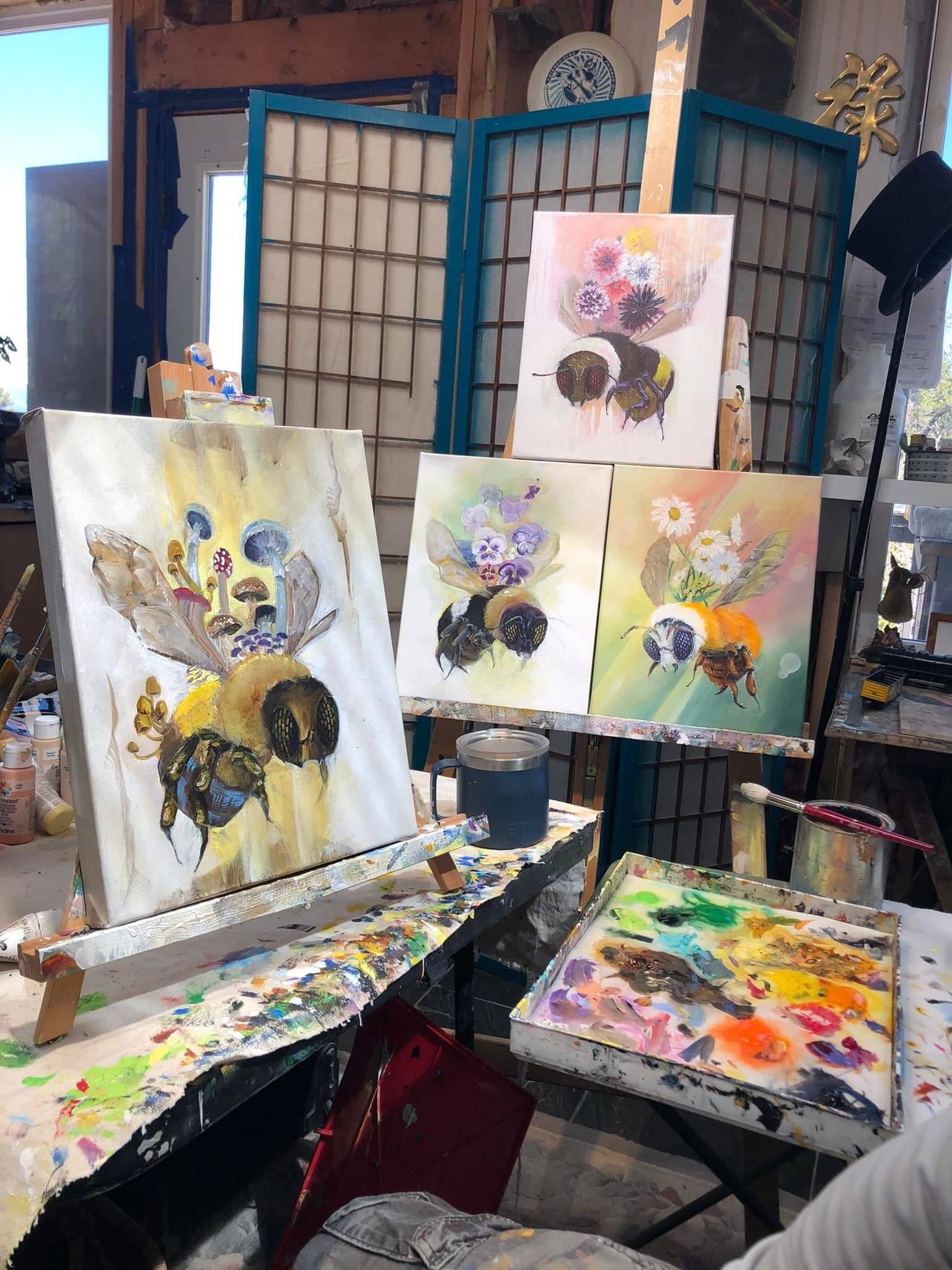She was one of the very first three bumblebees I created in my Spring Bee Collection. The vision of daisies and foxtails came to me so effortlessly that it felt as if she already existed—I simply had to uncover her. This painting holds that sense of discovery for me, the joy of finding something both familiar and new. I love how she revealed herself, carrying both fragility and strength, a messenger of harmony and imagination.